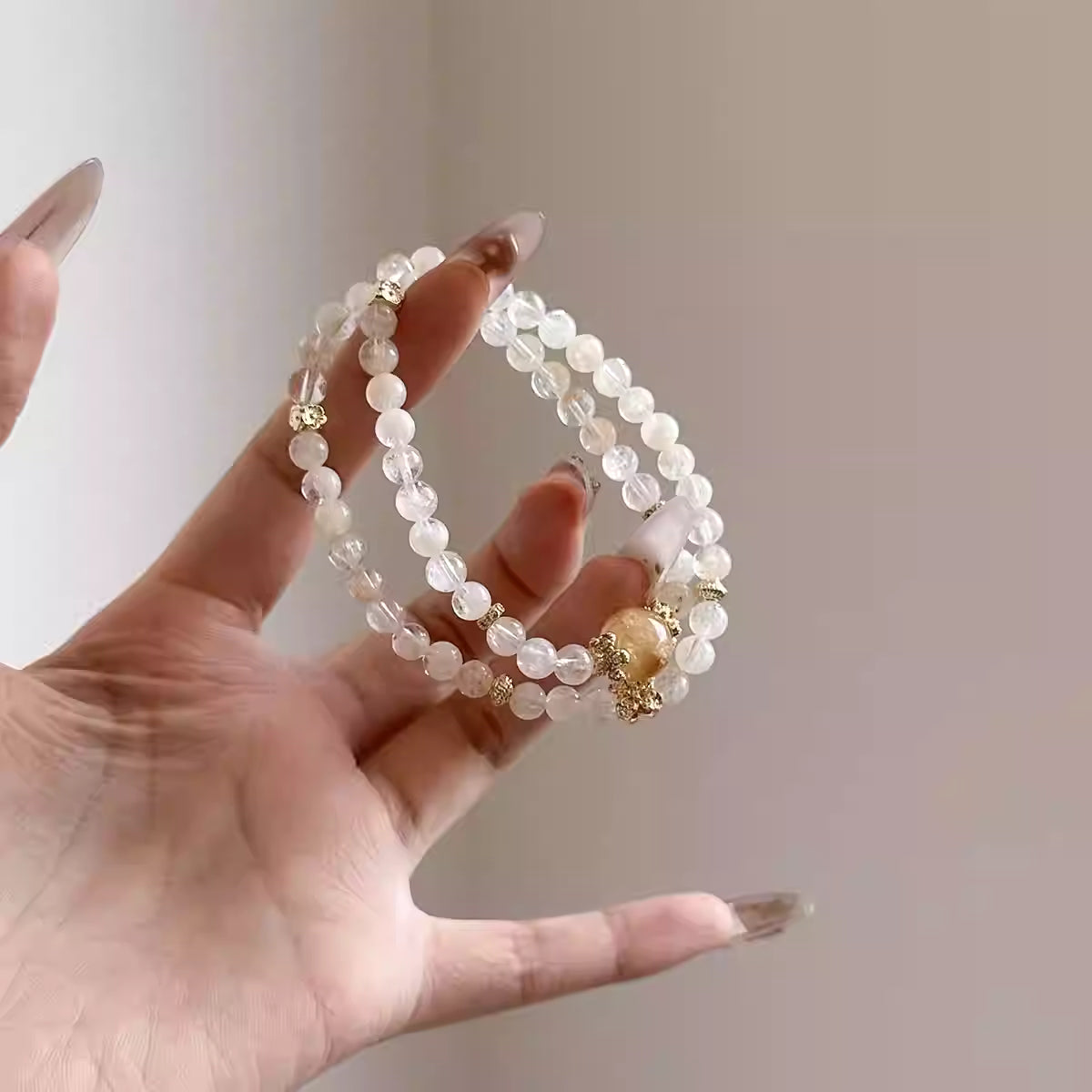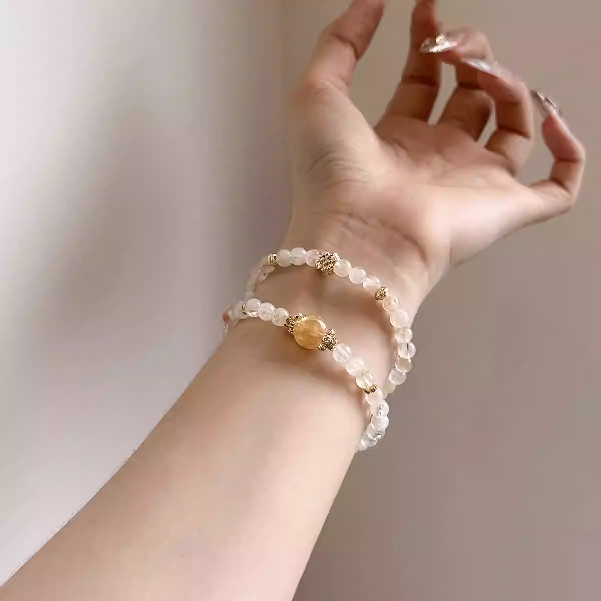 Featuring gently harmonized citrine beads and delicate gold-toned accents, each piece is designed to balance elegance with intention. The central sun-kissed citrine stone, known for its stabilizing energy, becomes a subtle anchor of calm in your daily rhythm.